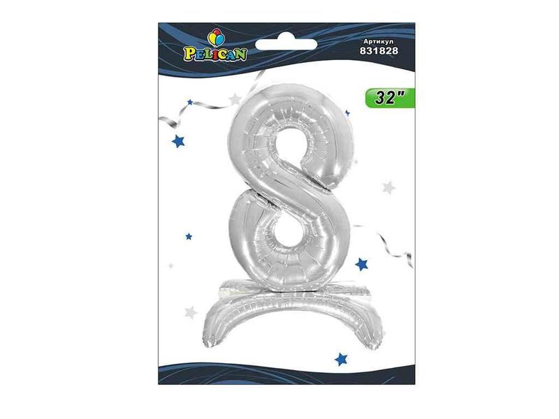 Кулька фольгована цифра на підставці 8 срібло 80см. 831828 тм pelican