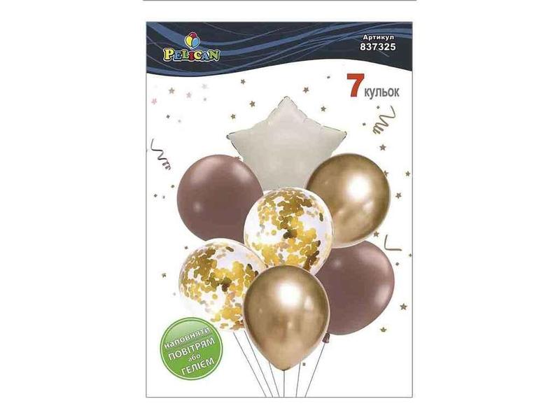 Набір з кульок зірка 7шт молочно-коричневий мікс з хромом тм pelican