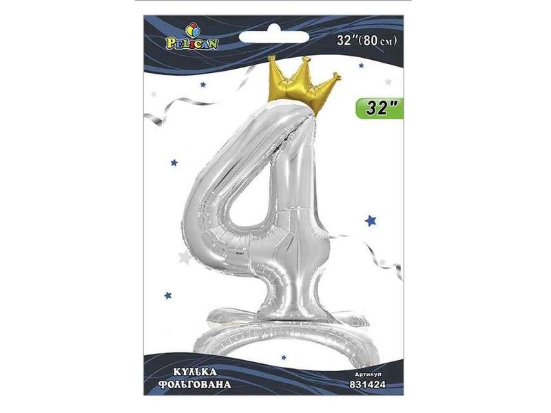Шарик фольгированная цифра 32 (80 см) с короной на подставке 4 серебро тм pelican