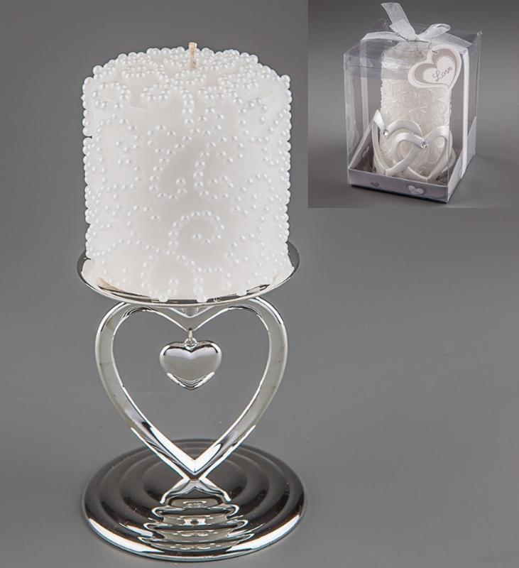 Вишукана свічка з красивим, витонченим декором у вигляді перлин, відмінно підійде для весільного обряду «сімейне вогнище». Ще стане відмінним доповненням зі створенню урочистої атмосфери на весільному бенкеті. Висота - 10 см. Діаметр - 7 см