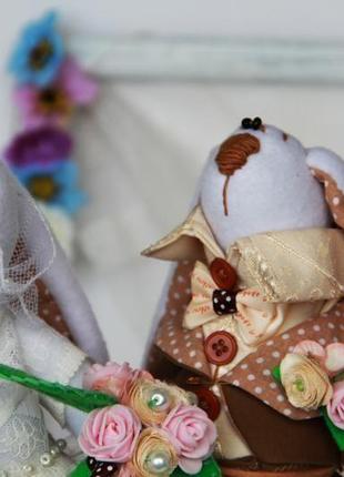 Ось і казка нарешті) хто слухав - молодець!!!! У нас весілля, друзі!🎉🎉🎉 Гей, гармошечка, дражни, Не поспішай, подманивай! Головний дзвін, дзвони, Маленький - подзванивай! Крикуни, співуни, танцюристи! Оглашенні, невгамовні! Нині бенкет, буйний бенкет на весь світ! Все - бажані, усе - запрошені! Як на ярмарковій площі Ви веселіє знайдете, Там і горло прополощете, Там заспіваєте та потанцюєте! Не ображайся, а отримуй Чашу повновагу! Підходь та привечай Нареченого з нареченою!🎉🎉🎉 Свадебные зайцы выполнены из флиса. Жених заяц как и полагается в костюме, а невеста с ресничками, в нарядном платье, с прекрасным букетом, который может как отстегиваться так и пристегиваться) Замечательный подарок на свадьбу, годовщину родных или друзей. Эксклюзивный подарок, потому что повторов у меня нет никогда! Сшиты по мотивам кукол Тильда. Зайки сидят и стоят без поддержки на своих крепких длинных лапочках. Станут прекрасным украшением свадебного стола и аксессуаром на чудесных свадебных фото, памятью, которая останется с парой навсегда. Всередині у обох вшиті намистинки - сердечка - душа заяча і заячі серця, що б'ються в унісон.🎉🎉🎉 Приймаю замовлення або продаю готових