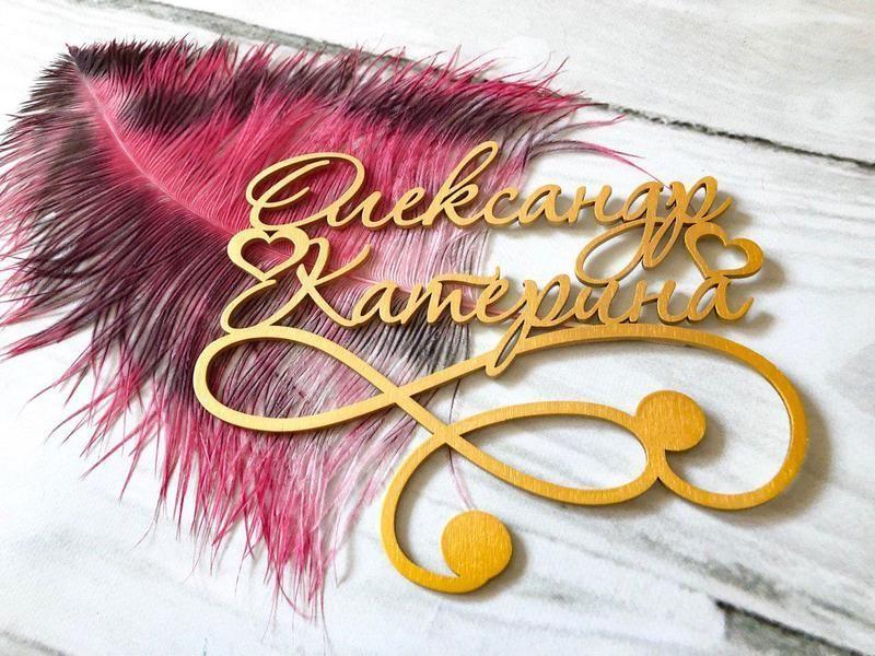 Імена молодят з дерева на весілля -це сімейна реліквія і пам'ять про торжестві. Розмір довжина 50 см , обговорюємо всі деталі ( розміри за Вашим запитом) Відмінний варіант для декору фону нареченого і нареченої, для весільної фотосесії , надалі після торжества стане відмінним прикрасою вашого інтер'єру. Вартість різна за розмірами вони бувають РІЗНИХ РОЗМІРІВ І ДЕКОРУ. Товар виготовляється на замовлення