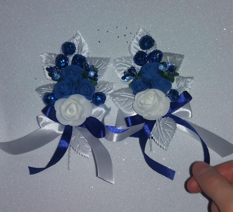 Виробник: Власне виробництво Тип весільних аксесуарів: Букети Кілька примірників у наявності витончена синя бутоньєрка на весілля для молодят (нареченому та нареченій) або їх свідків - у синьому відтінку, зроблена під "живу квітку" з декоративними флористичними доповненнями. Ідеально підходить для тематичних весіль з використанням аксесуарів певного кольору. Матеріал — латекс, атлас, сітка, стрічка, намисто, дріт. Колір: синій. Вартість - за 2 шт.