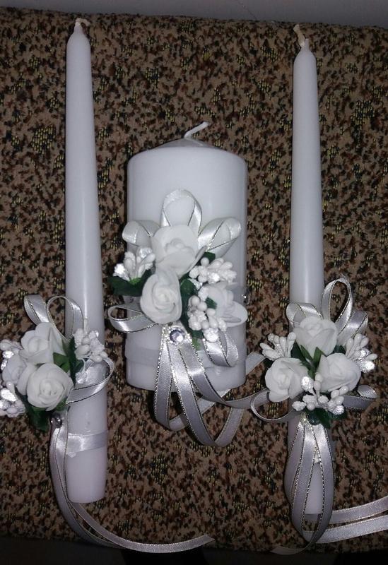 Білий комплект весільних свічок сімейне вогнище "букет"