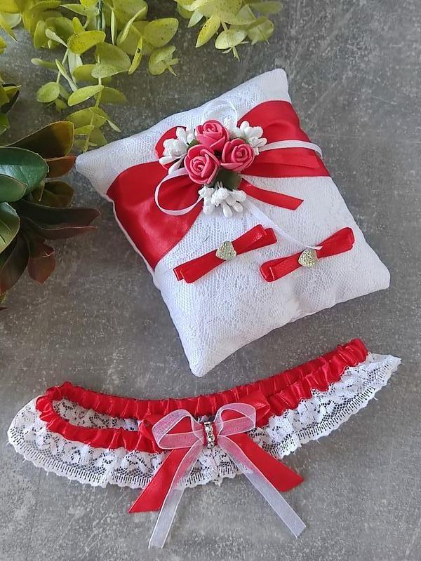 Подушечка 15*15см. Підв'язка універсального розміру. Колір білий, червоний. Ціна вказана за набір.