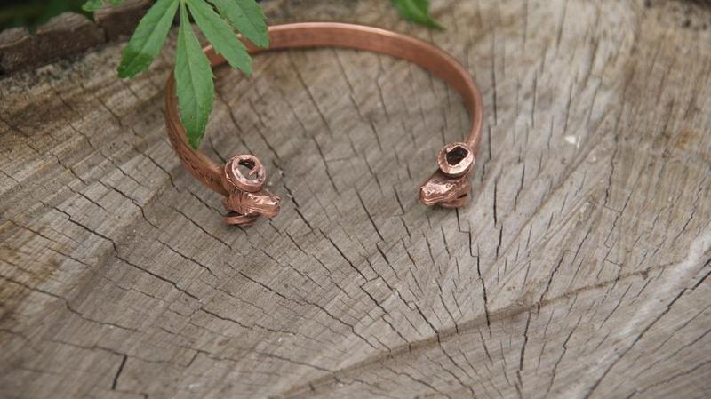 Вишуканий мідний браслет ручної роботи з двома баранами