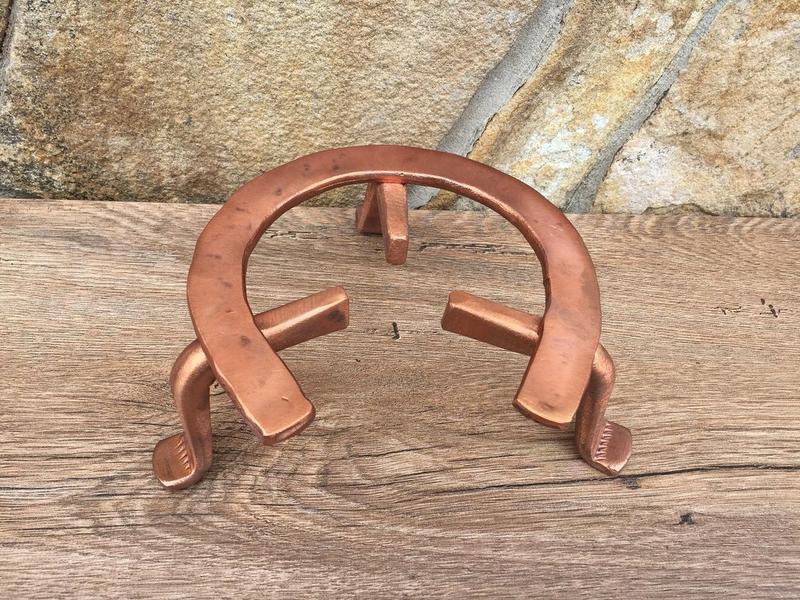 Шукаєте гарний мідний подарунок на Мідне весілля, чи просто декор для дому? Ця викована вручну мідна підставка у вигляді підкови, може стати гарним подарунком для дружини чи подруги. Виглядає дуже святково і декоративно! Ви можете використовувати його, щоб поставити на нього каструлі або горщики з квітами, або просто використовувати його як декор будинку. Виконана в сільському стилі, ця підставка має дуже цікавий вид. Розміри: висота - 6,5 см довжина - 15 см ширина - 15 см вага - 1 кг Це міцна підставка, виготовлена з товстого мідного листа, досить важка для своїх розмірів. 100% справжня мідь. Колір: не фарбований, не лакований. Додайте шарму своєму дому!