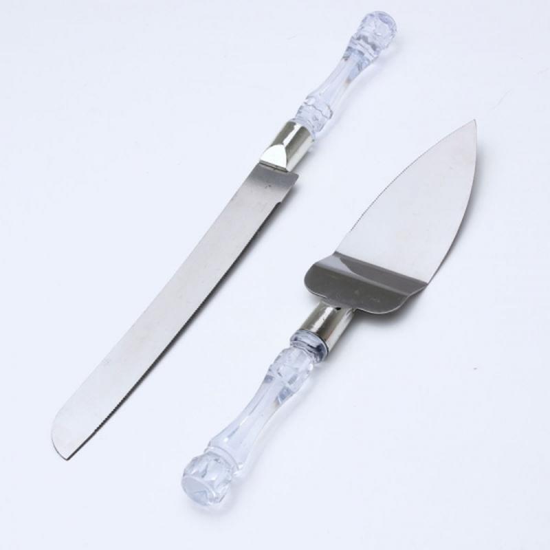 Жодне весілля не обходиться без весільного торта. Як відомо, настрій весільної урочистості створюється з дрібниць. Саме для цього Вам потрібні гарні набори для торта. Момент, коли молодята розрізають весільний торт, знімають на фото та відео, кожну деталь буде зафіксовано. Оригінальні, красиві ніж та лопатка для весільного торта додадуть Вашому святу урочистості та назавжди залишаться на згадку у Вашій родині. Шикарний набір для весільного торта. Ніж та лопатка мають пилку. Ручка ножа та лопатки виконана у вигляді кришталю. Розмір леза ножа: 20 см Розмір леза лопатки: 14 см