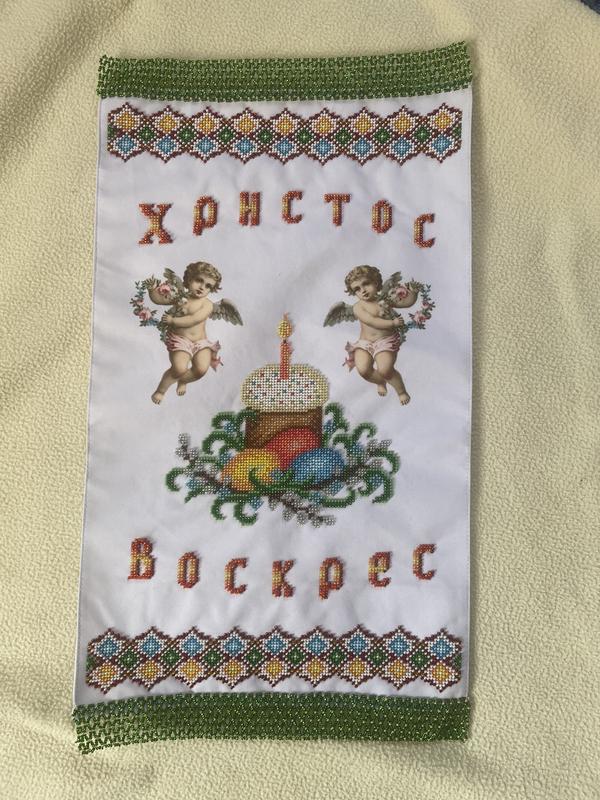 Вишиті великодні рушнички чеським бісером, закінчення виплетено із бісеру, з іншої сторони гарно підшиті тканиною. Вартість дитячих 500 грн, дорослий 1000 грн