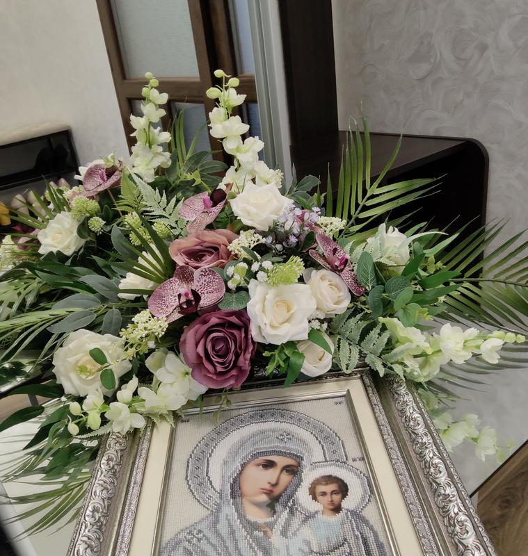 Пропонуємо вам неповторний віночок з декоративних квітів, який чудово прикрасить вашу церковну ікону. Цей віночок створений з любов'ю майстром-флористом з використанням якісних матеріалів. Він додасть особливий шарм вашому дому або церкві, створить атмосферу тепла і затишку. Кожен елемент у цьому віночку пропитаний витонченим смаком та чуттєвістю. Купуючи цей віночок, ви отримуєте чудовий аксесуар, який прикрасить ваше свято і додаст йому особливий колорит. Замовляйте вже зараз і насолоджуйтеся красою цього віночка! Ціна вказана за 1 метр віночка