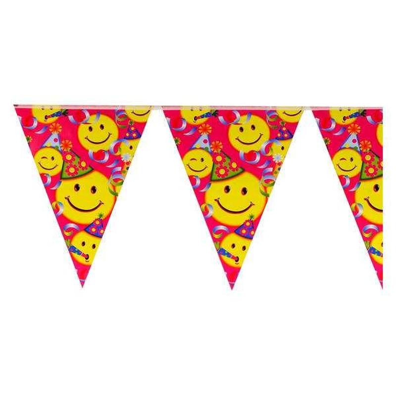 Гирлянда-вымпел Смайлики из 10 флажков. Праздничная бумажная декор-растяжка ко дню рождения из 10 флажков на тканевой ленте. Длина 230 см, флаг 28 х 21 см.