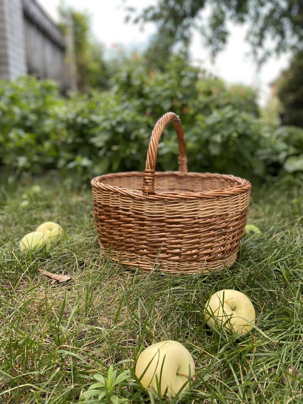 Кошик плетений ручної роботи Розмір: довжина 31 см, ширина 24 см, висота 29 см Ручка зафіксована у дно кошика, що не дає їй відірватися чи деформуватися. Готовий виріб покритий лаком Є й інші в наявності(різні за розміром та по дизайну)