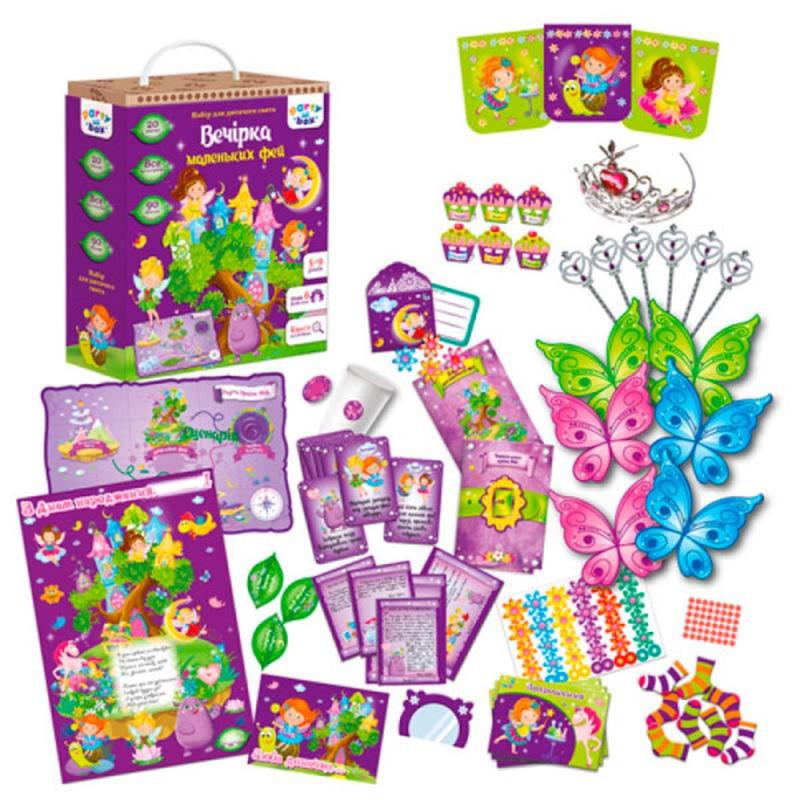 Найкраще свято для дитини українська - вечірка маленьких фей - дасть змогу дітлахам вирушити у справжню пригоду. Вони познайомляться з тролем Бубонею, виконають усі його завдання і знайдуть скарби. Маленькі феї на 90 хвилин перенесуться в чарівну країну, де на них чекатимуть веселі ігри, творчі та інтелектуальні завдання, магія та чари. У коробці ви знайдете весь необхідний реквізит для створення урочистої атмосфери: декор для прикраси будинку і святкового столу, запрошення для гостей, атрибути квесту. На сайті дитячих іграшок Ви можете купити Набір для свята Вечірка феєчок українська та інші магнітні ігри, які безсумнівно сподобаються Вам і Вашим дітям. Для більш детальної інформації зв'яжіться з нашими менеджерами.