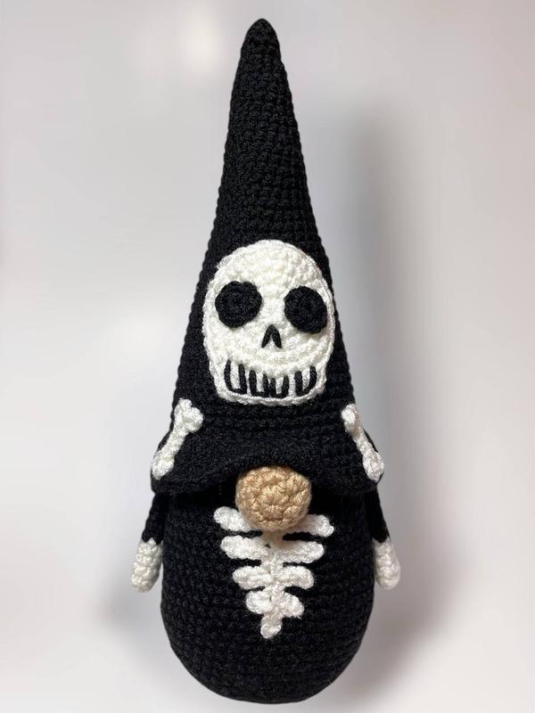 Вʼязаний скандинавський гном з черепом та кістками. хелловін. ручна робота