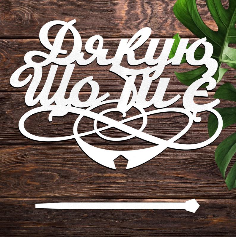 Дерев'яний топпер "дякую, що ти є" напис 13х9см білий топер для торта, у букет квіти фігур...