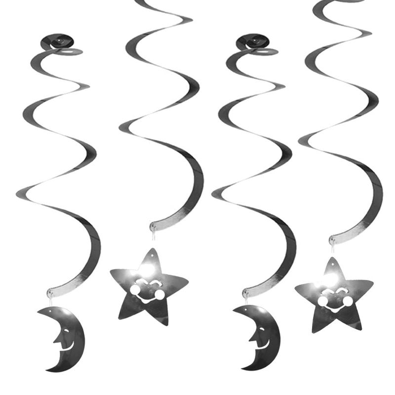 Декор спіральки місяць та зірки (уп 6шт) срібний