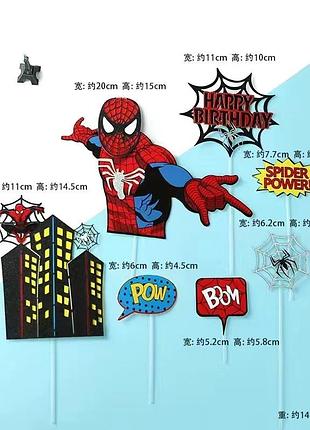 В наборі картонні фігури, які зображені на фото. Є шпажки на які можна приклеїти та самі наклейки за допомогою можна наклеїти шпажки до фігурок.