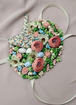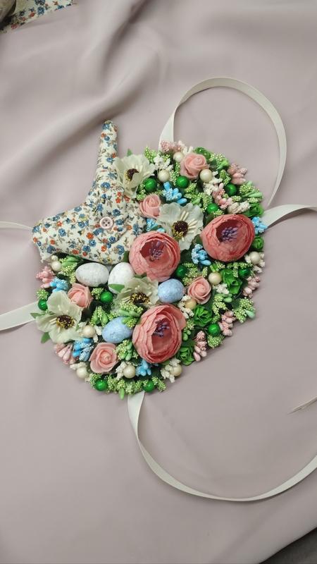 З'ємна великодня прикраса на кошик. Кріпиться за допомогою стрічок. (приклад кріплення див. на останньому фото) Розмір 20х26 см.
