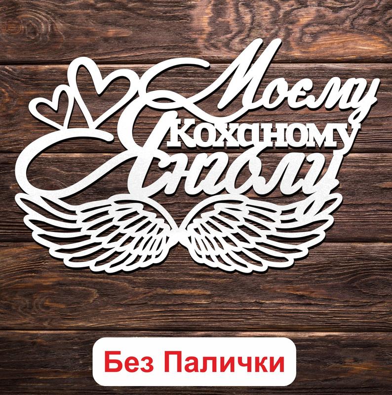 Білий топер "моєму коханому янголу + крила (без палички, без пакування)" 16х10см фігурка в...