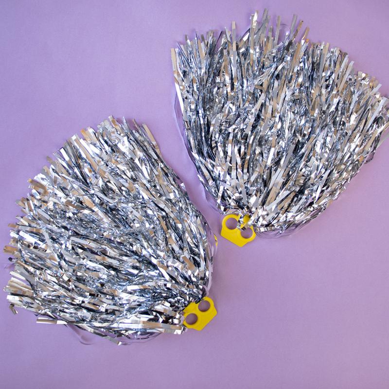 Помпони для черлідингу струмені з кільцями для пальців уп. 2 шт преміум (срібні)
