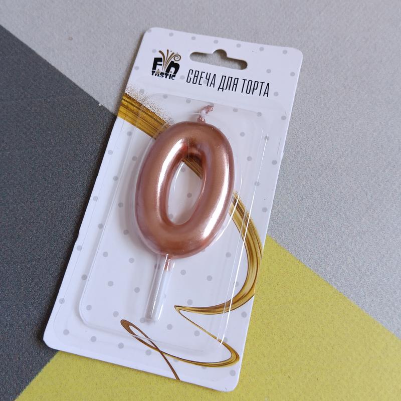Свічка для торта 0 цифра рожеве золото