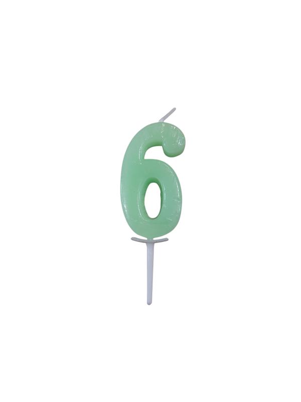 Свечка в торт цифра 6 на палочке 5 см салатовый