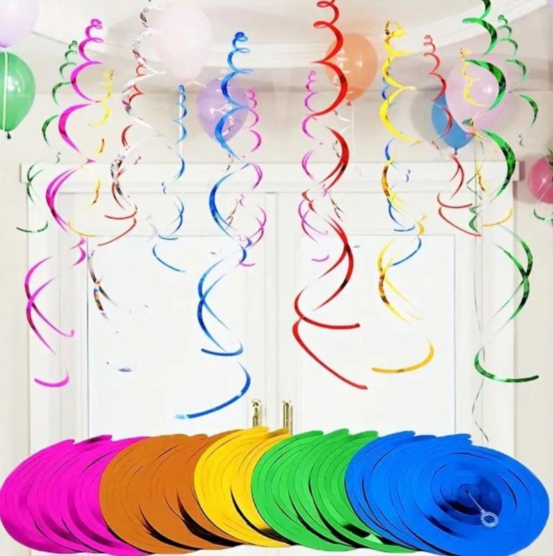 Гірлянди із фольги. Розмір: довжина близько 70см. Колір: різзнобарвний. Матеріал: фольга. Кількість: в наборі 18 гірлянд.