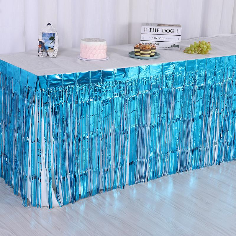 Дощик на фотозону або прикраси столу. Колір: блакитний. Матеріал: фольга. Розмір: висота 74 см, довжина 274 см.