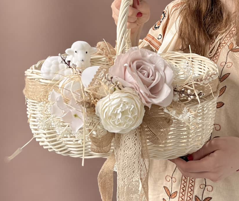 Великодній кошик 35 см модель – середня, перлова розмір – довжина 34-35 см, ширина 27-28 см, висота 13-14 см