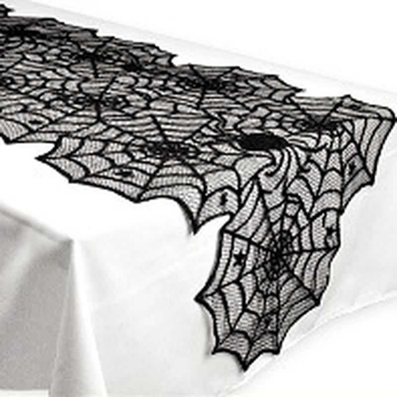 Вузька скатертину для Halloween "Павутина з павуками". Колір: чорний. Матеріал: поліестер. Кількість: 1шт. Розмір: 183*46см.