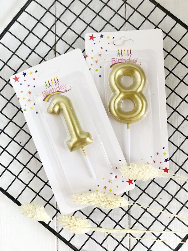 Свечи в торт. Цифры «1» и «8» Цвет: золото Цена указана за 2шт