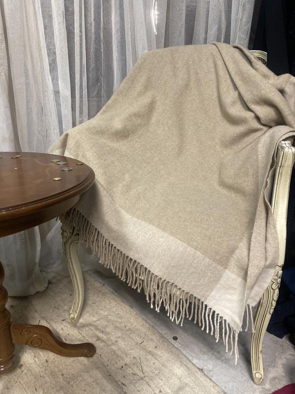 Теплый, комфортный легкий плед бежевого цвета. Размер:172х142 см. Бирки отсутствуют, но на ощупь -в составе шерсть.