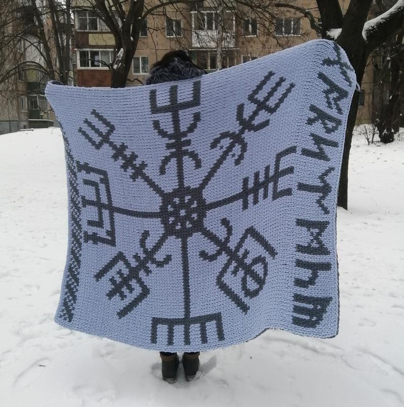 Розмір - 120*140 см Вага приблизно - 2 кг. Матеріал - гіпоалергенна пряжа Alize Puffy. Вегвізир у перекладі означає “покажчик шляху”. Ще з давніх часів вважалося, що носій Вегвізира не загубиться і завжди знайде вірний шлях, навіть якщо опиниться в незнайомих місцях. Він слугував символом безпеки та захисту, а також допомагав мореплавцям повертатися додому. Додаткові характеристики: Колір: Сірий Матеріал: Плюш Колір: Сірий Ширина: 120 Тематика декору, малюнка: Культура народів світу Подарункова упаковка: Немає Тип по складу: Штучний