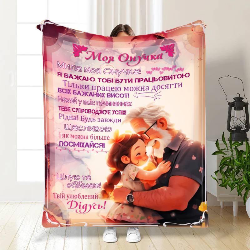 Персоналізований плед 3d обійми онучці від дідуся якісне покривало з малюнком 160х200
