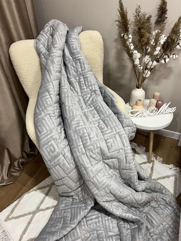 🤍🤎Двухстороннее покрывало: одна сторона - мягкий и роскошный велюр, другая - нежная и практичная микрофибра. Стильный вид, приятный на ощупь, износостойкий и легкий в уходе. Наповнювач Холофайбер 100мг/м2 Размер 200*220см
