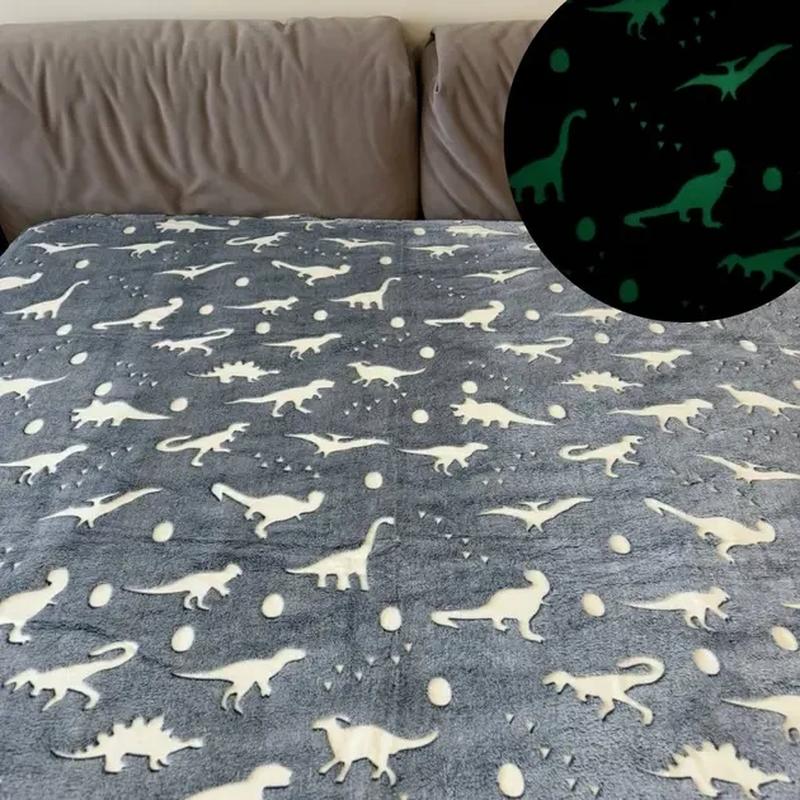 Флісовий плед полуторний 150х100, що світиться в темряві динозаври сірий