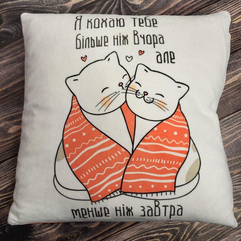 Подушка з малюнком "я кохаю тебе", червоний низ