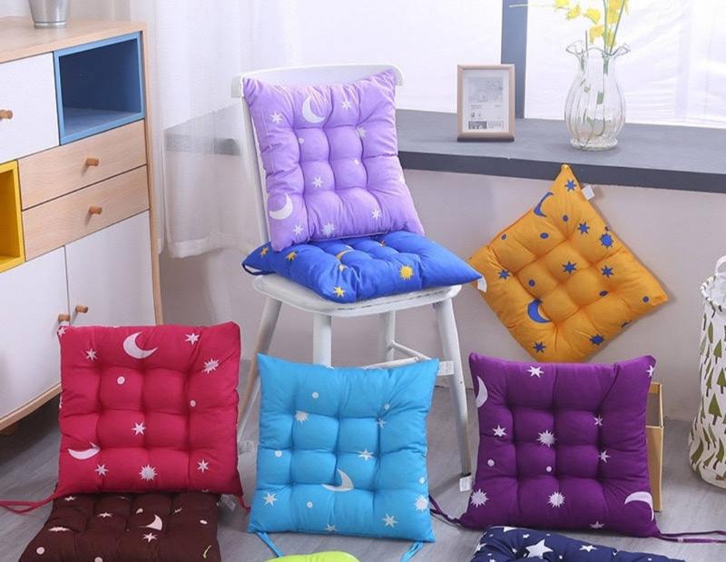 Подушка на стілець із зав'язками чудово виглядає на кухонних табуретах і стільцях, у саду на гойдалках та лавках, у вітальні та дитячій кімнаті, у кафе та будинку відпочинку, у кріслі автомобіля тощо. Подушка зручна для комфортного проведення часу і дуже корисна тим, хто проводить сидячи більше 3-4 годин на день. Центральна прошивка подушки дозволяє наповнювачу не збиватися під час прання. Розмір: 35×37см Матеріал: поліестер. Наповнювач: синтепон.
