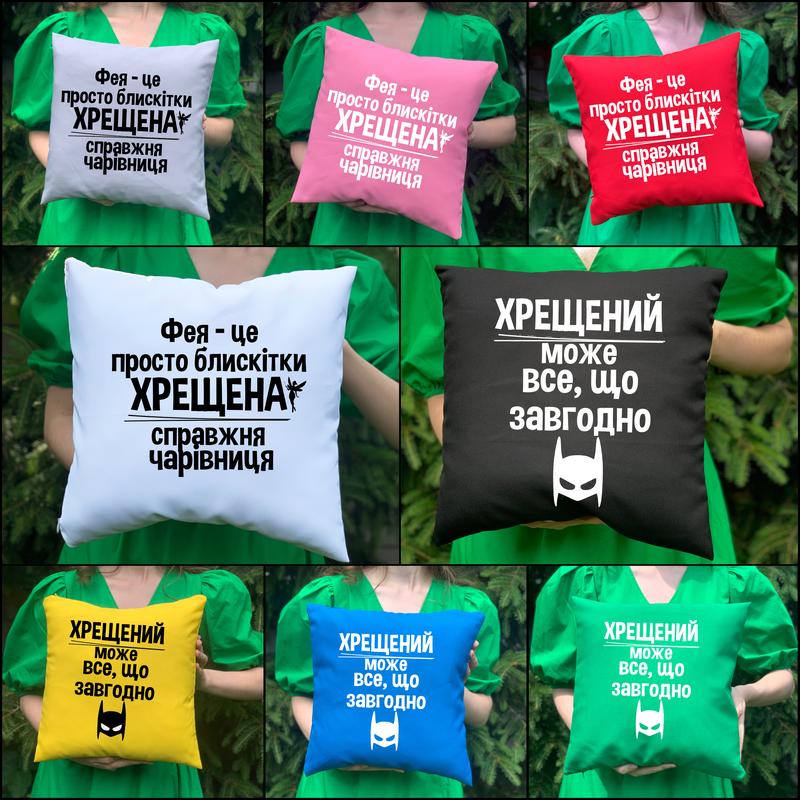 Такий набір подушок буде прекрасним подарунком або доповненням інтерʼєру. Ми друкуємо принт спеціально для тебе – будь-яке зображення, текст чи ідея 💡 Ціна вказана за набір з 2 шт 35/35см - габардин. Для інших подушок ціну уточнюйте. В асортименті маємо два види подушок: Габардинові (пружна та щільна тканина) та Плюшеві (мʼяка та ворсиста тканина). Габардинові подушки - повністю кольорові і можливий друк з двох сторін. Плюшеві подушки - спереду білі для принта, а спинка кольорова (окрім 45/45 та 35/75 вони повністю білі що дає можливість додатково друку.)