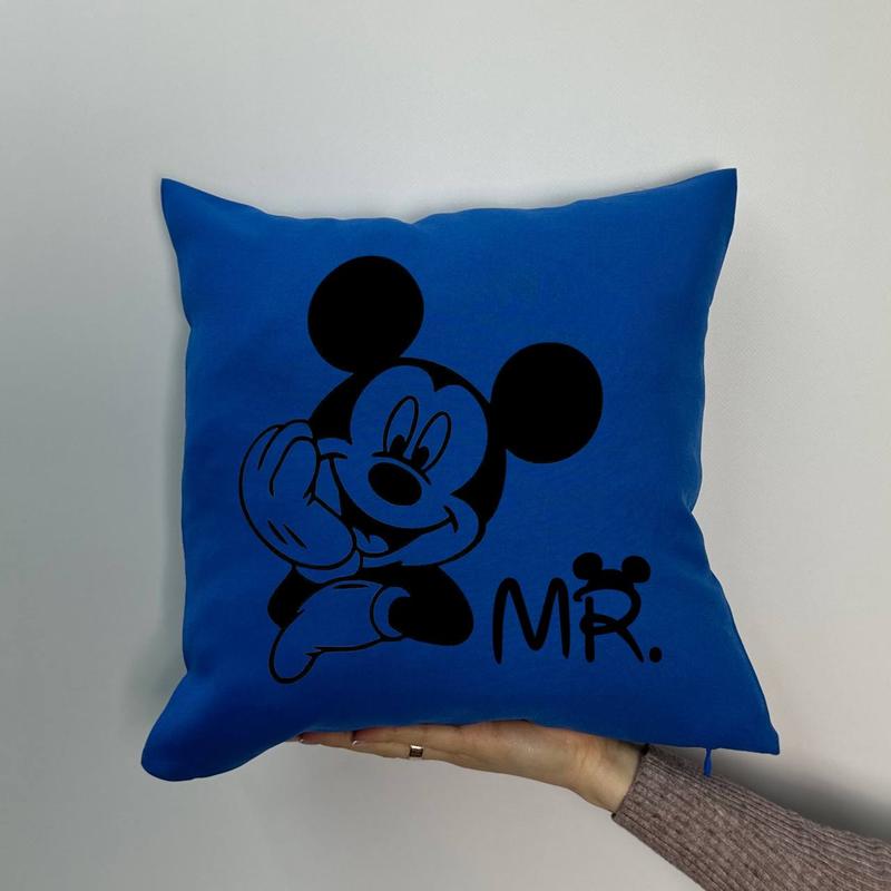 Подушка з принтом габардинова міккі маус, синя 35х35 (1198)