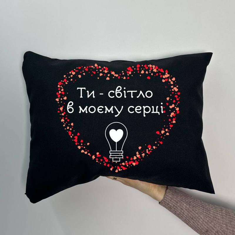 Подушка з принтом габардинова ти світло в моєму серці, чорна 35х45 (1436)