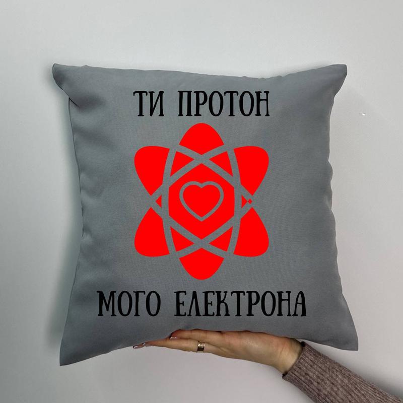 Подушка з принтом габардинова ти протон мого електрона, сіра 35х35 (1476)