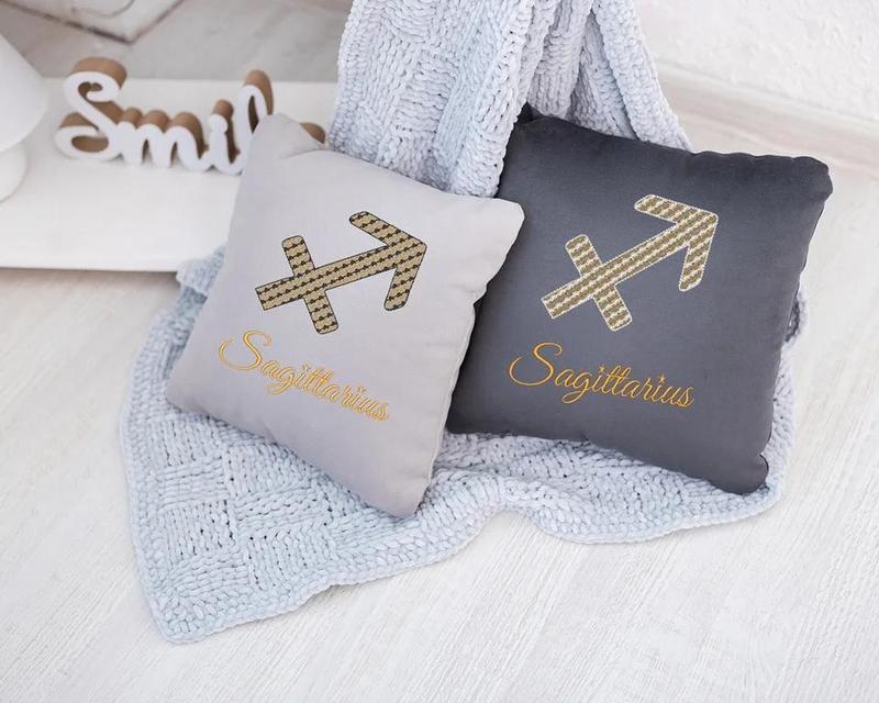 Подушка гороскоп стрілець подарункова в різних кольорах світло-сірий