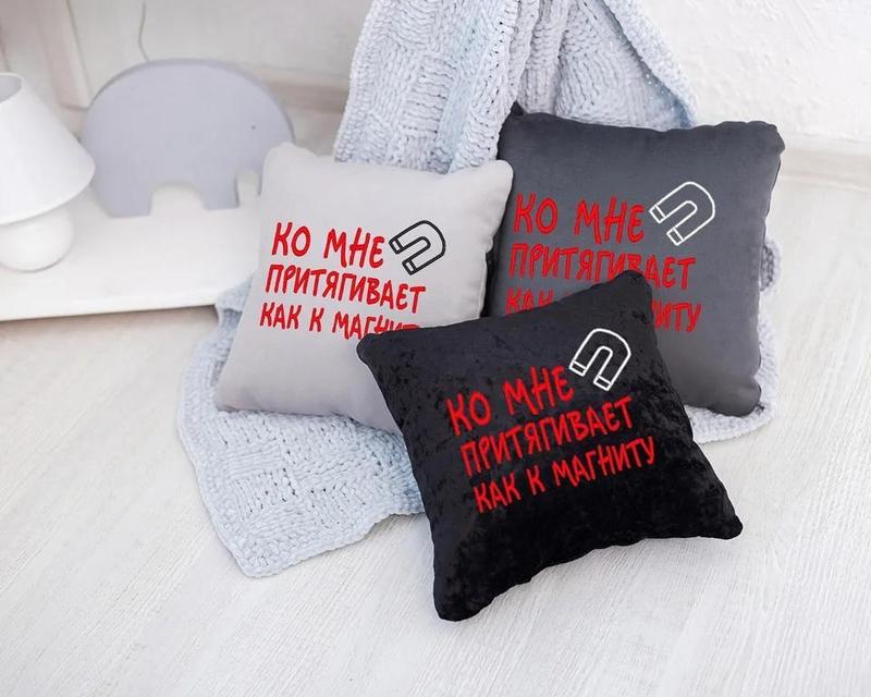 Подушка подарочная для друзей «ко мне притягивает как к магниту» светло-серый