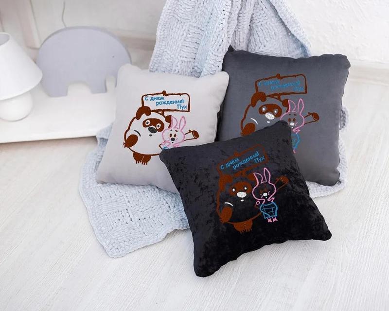 Мини-подушка декоративная с днем рождения винни и пятачок флок черный