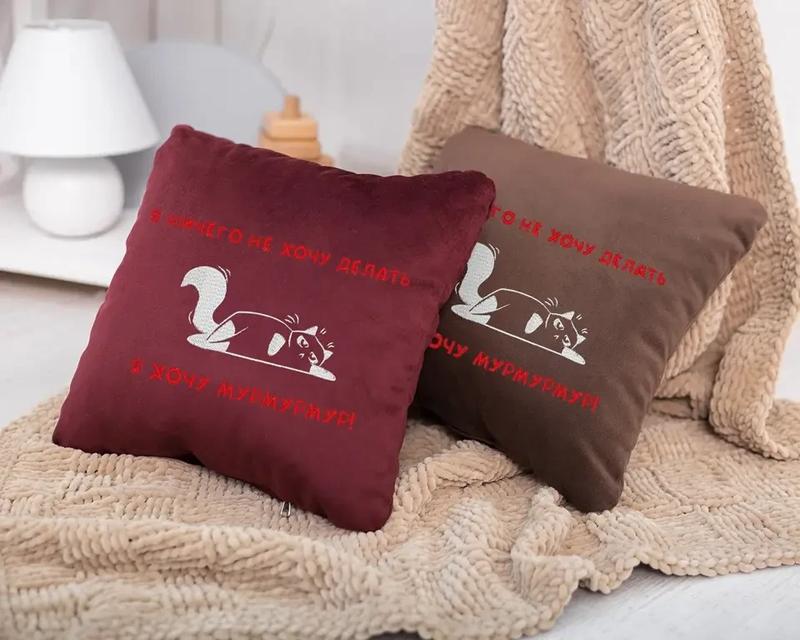 Подушка декоративна я нічого не хочу робити флок коричневий