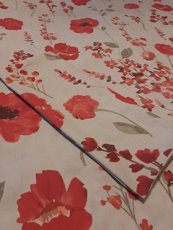 Ну дуже красивий комплект постільної білизни з чудовими маками George Home. Комплект складається із підковдри 197×196 см. на кнопках та 1-ї наволочки 76×45 см. Якісний, добротний. Але має незначний дефект, маленькі плямки з однієї сторони на останніх 2-х фото видно. Склад 52%- поліестр, 48%-котон.