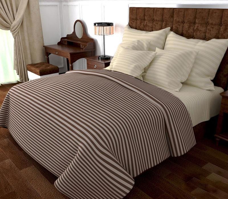 Постільна білизна дует коричнево-молочна бязь страйп meriset - сімейний
