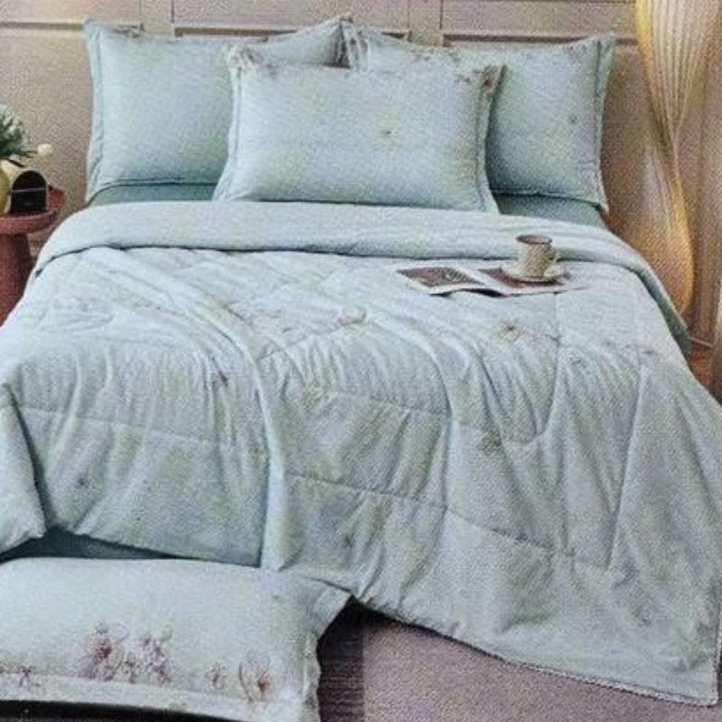 Постельное белье с летним одеялом Евро KOLOCO (41686) Комфорт в спальной комнате начинается с покупки качественного и красивого постельного белья, которое не только добавляет эстетики вашей кровати, но также защищает матрас, одеяло и подушку от загрязнений. Комплекты постельного белья KOLOCO, изготовленные из 100% хлопка, отличаются великолепным дизайном, прочностью и долговечностью, создает атмосферу неповторимой красоты и роскоши, блаженства и покоя. Характеристика: Постельное белье с летним одеялом Евро KOLOCO (41686) - Тип: постельное белье; - Дизайн: цветочный принт; - Материал: 100% хлопок, сатин; - Одеяло: гипоаллергенный наполнитель, приятный на ощупь чехол; - Размер одеяла: 210 х 230 см.; - Размер простыни: 220 х 240 см.; - Размер наволочек: 50 х 70 см. Комплектация: Постельное белье с летним одеялом Евро KOLOCO (41686) - Одеяло – 1 шт.; - Простынь - 1 шт.; - Наволочки - 2 шт.; - Упаковка: сумка.