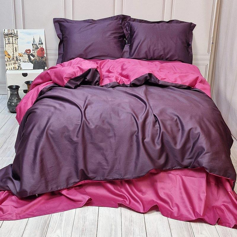 Постільна білизна дует violet flower/berry premium сатин однотон meriset - полуторний на р...